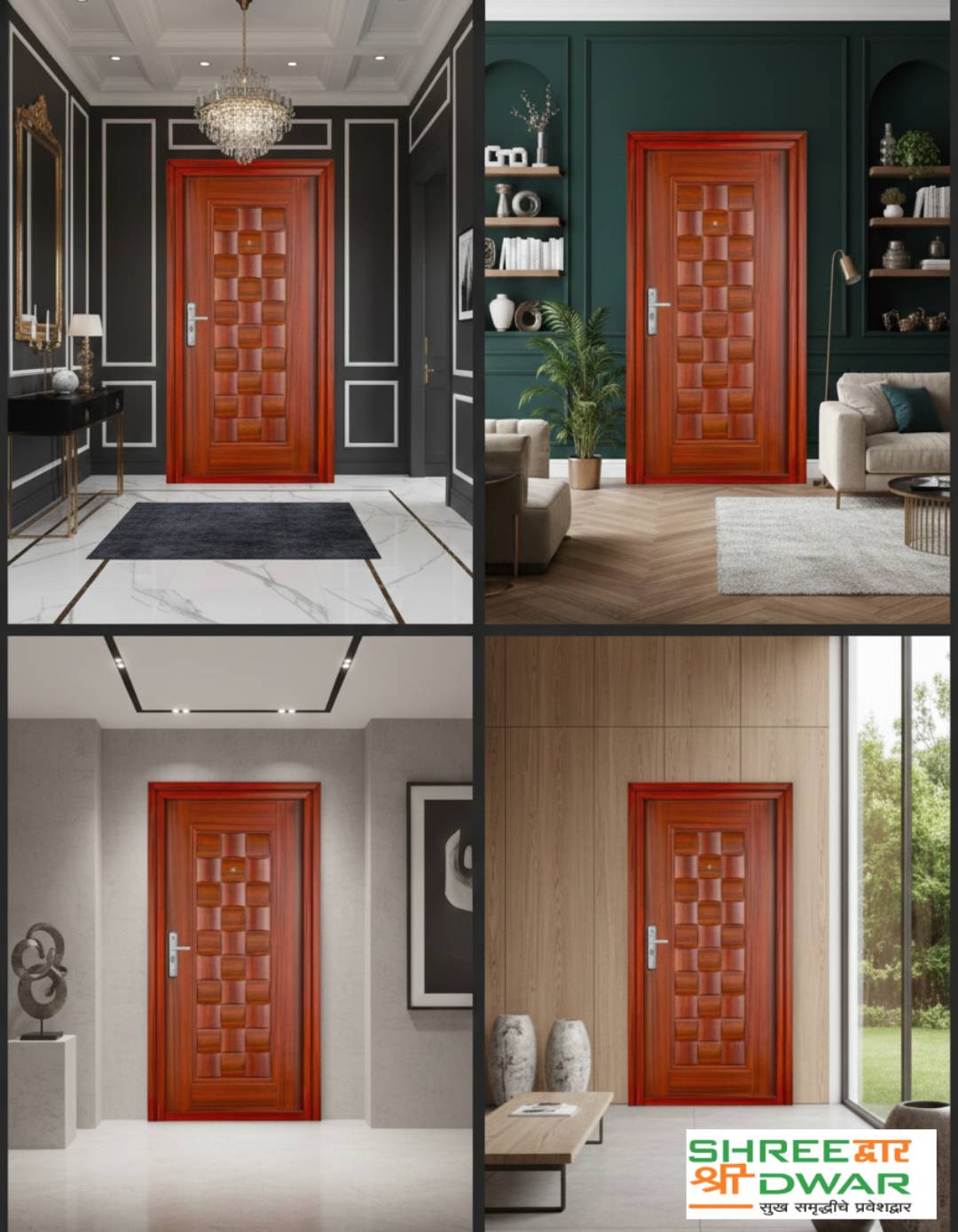 The door is completely maintenance-free, termite-proof, water-resistant, and fire-resistant, delivering lifelong safety and reliability. Ideal for main entrances of homes, flats, villas, offices, and commercial spaces requiring superior strength and aesthetics.