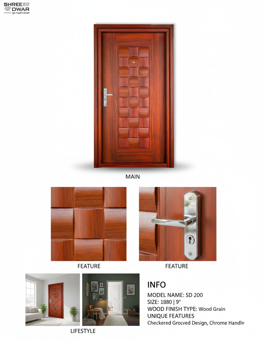 Product 55 (MODEL :SD 200 SIZE :1080 9″) is engineered using high-grade GI steel and advanced powder coating technology. Each door ensures maximum security, long-lasting durability, and a premium modern appearance.