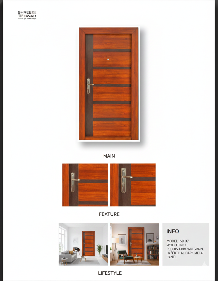 Product 39 (MODEL :SD 97 SIZE :880 S/L 5″) is engineered using high-grade GI steel and advanced powder coating technology. Each door ensures maximum security, long-lasting durability, and a premium modern appearance.